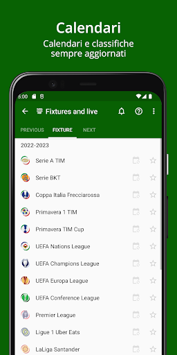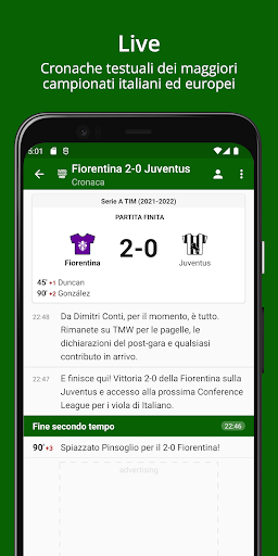 - Risultati partite in temporeale (con notifiche push) con relativa cronaca delle principali partite