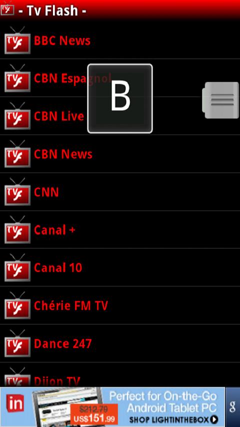 Watch TV in flash format on your phone.■ free ■ WiFi recommended■ Requires Adobe® Flash® PlayerLIVE TV:CNN, Euronews, BBC, Nasa tv, CBN...VOD:Fox, CW, ABC...If installation failed: unmount sdcard before install./!\ WARNING: BETA => thank you for your indulgence.Recent changes:• fix tablet, full support honeycomb• compiled Android 3 2 Content rating: High Maturity