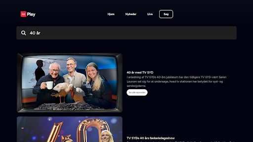 På TV SYD PLAY får du nemlig timevis af nyheder og underholdning fra Syd-og Sønderjylland – fra stærke dokumentarer og nyhedsindslag til livstilsprogrammer og fiktionsserier. TV SYD PLAY holder dig opdateret på dit lokalområde og giver dig de vigtigste nyheder fra regionen – uanset om det gælder breaking, medrivende personskildringer eller dagsordenskabende historier.
