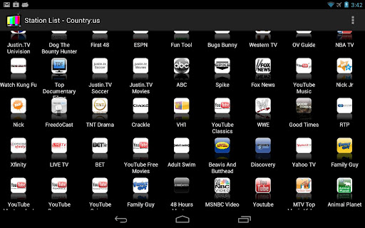 tv shows OnlineWatch TV OnlineYaybe.tv Television Tablet TVThis app is in active developmentPlease tell me if you find a bug and I will fix for you as soon as possible.I appreciate your constructive feedback please email me or if you enjoy this TV site compendium kindly leave me a 5 review Victoria48 Hours MysteryAamp;E TVABCABC NewsAccuweatherAdult SwimAlfAmerican DadAnimal PlanetAnivideAssociated PressBeavis And ButtheadBETBINGBleachBloomberg ShowsBloomberg TVBloomberg VideoBonesBugs BunnyBusiness WeekC Net TVCSpanCSpan 2CSpan 3CBCCBN EspanolCBN Media CenterCBN NewsCBN News UpdatesCBN TVCBSCBS News CBS News Strange NewsChristian World NewsClassic CartoonsCNBC News ClipsCNN Live Outside USCNN Live USCNN Live international CNN VideoComcast XfinityTVCorbina TVCrackleCSI Crime Scene InvestigationDemocracy NowDiscoveryDisneyDisney JuniorDog The Bounty HunterDWESPNFamily GuyFamily MoviesForbesFOXFox BusinessFox NewsFox News RadioFox SportsFreedoCastFun ToolGleeGlobal PostGood TimesHistoryHLNHouseHulu Feature FilmsHulu TVJersey ShoreJustin.TV EntertainmentJustin.TV Live ChannelsJustin.TV MoviesJustin.TV SoccerJustin.TV SportsJustin.TV UnivisionKnight Riderlive tv Lost In SpaceMarket WatchMonkey TVMovie TrailersMSNBC LiveMSNBC VideoMTV Top Music VideosNarutoNational Geographic ChannelNBA TVNBC Nightly NewsNCISNew York TimesNickNick JrNightly Business ReportOV GuidePentagon ChannelReutersRTPSanford And SonSmack DownSouth ParkSpikeSpongebob SquarepantsThe 700 ClubThe First 48The SimpsonsThe StreetTNT DramaTop Documentary FilmsTV LandTwitch TVUnited Nations WebcastUS Department Of StateUSA TodayVevoVH1Voice Of AmericaWatch Kung FuWeather ChannelWestern TVWWEWWE Monday Night RawWWE OnlineWWI TVYahoo NewsYahoo TVYoutubeYouTube Action amp; AdventureYouTube ClassicsYouTube DocumentaryYouTube FamilyYouTube Free MoviesYouTube HorrorYouTube MusicYouTube Mystery And SuspenseYouTube RomanceYouTube Science Fiction