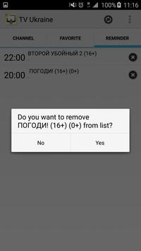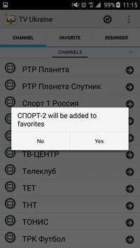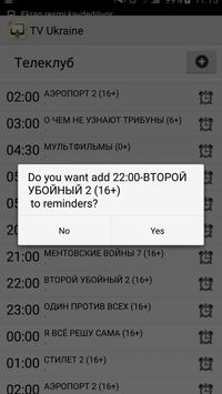 Program for viewing TV programs include a lot of Ukrainian and Russian TV channels. You can view the daily program of each channel, add your favorite channels to favorites, and you can set a reminder for each channel separately, so as not to miss your favorite TV shows, TV series, the movie. Reminder is triggered by a notification 5 minutes before the start of the program. Application does not have neither a television broadcasting, and is intended solely for viewing the TV Ukrainski and Russian channels.
