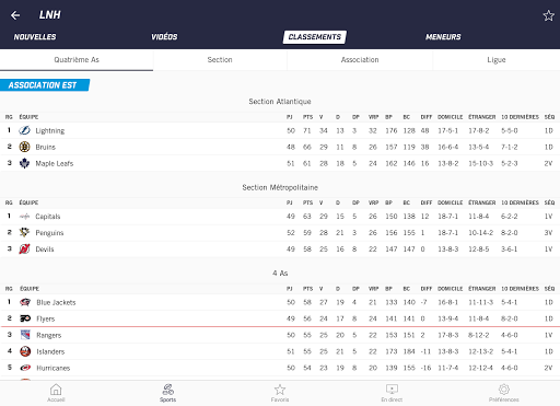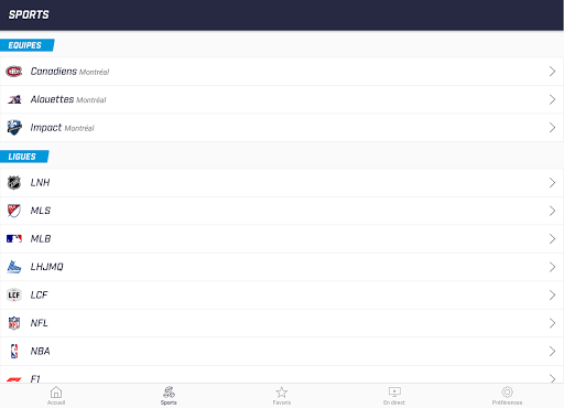 Suivez les résultats, classements, statistiques de la LNH, MLS, MLB, LHJMQ, NFL et LCF.