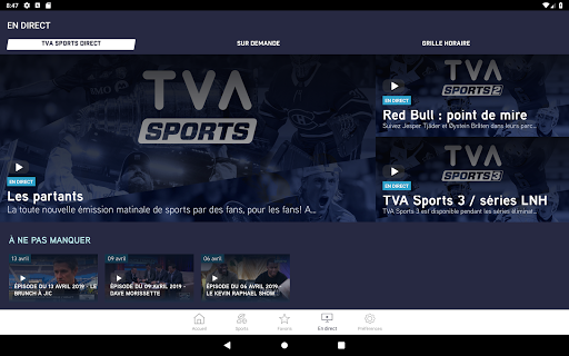Visionnez la télévision en direct et consultez la grille horaire de TVA Sports.