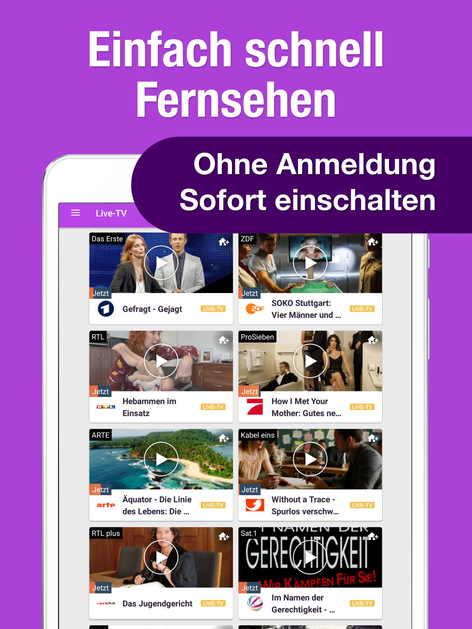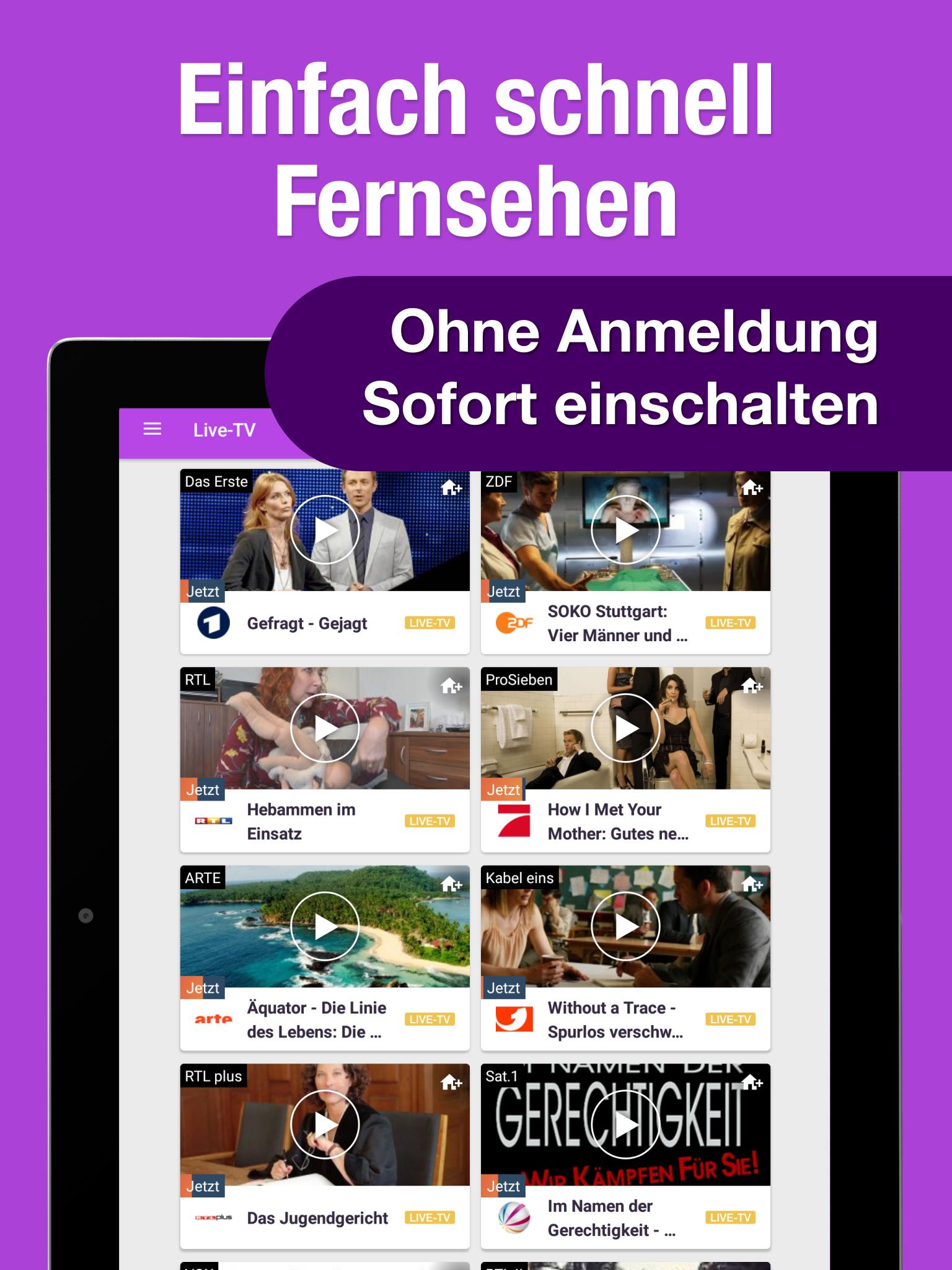 • Jederzeit Live-TV ohne Anmeldung innerhalb von Deutschland nutzen