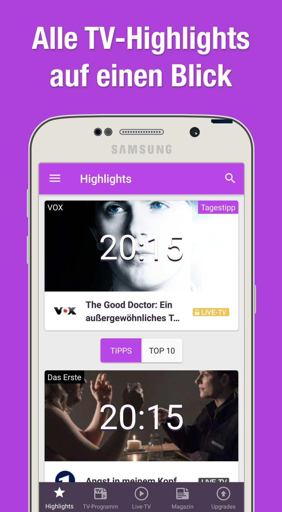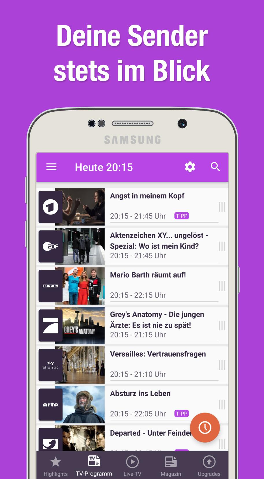 • Komplettes TV-Programm für den vollen Überblick, was im Fernsehen läuft