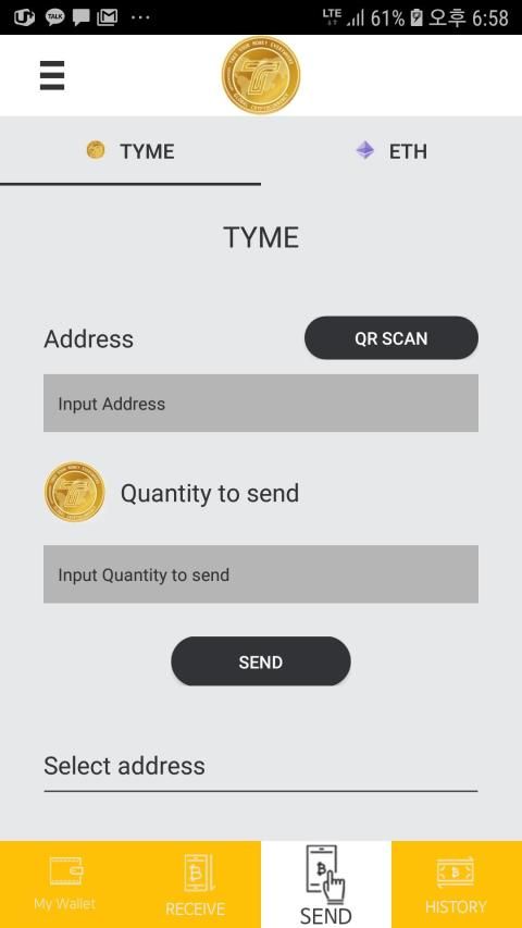 TYME Coin wallet. You can send and receive the wallet on the blockchain. Coins use an Ether network, so an Ether fee is required separately.