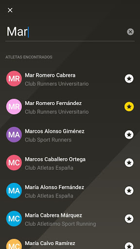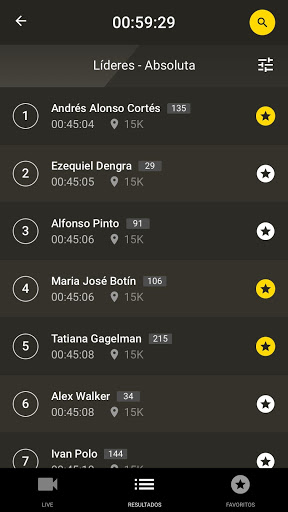 Sebagai tambahan, anda dengan cepat dapat melihat apa-apa kedudukan dengan serta-merta: mengikut kategori, pelari pertama setiap regangan dan titik terakhir yang dicapai dari Peserta yang anda ikuti.