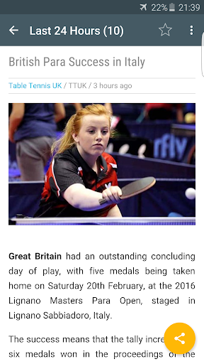 Table Tennis news is the best free table tennis news app on the Android app store. The app contains the most popular RSS feeds from around the world, covering everything to do with table tennis on and off the table.