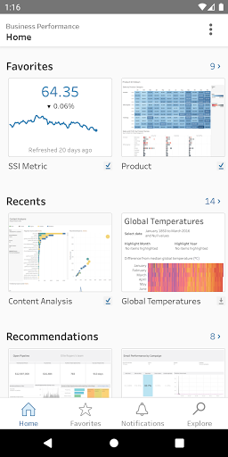 Tableau Mobile gives you the freedom to stay on top of your data, no matter where you are or when you need it. With a fast, intuitive, and interactive experience, explore your dashboards and find just what you’re looking for, all from the convenience of your mobile device.