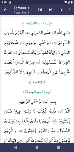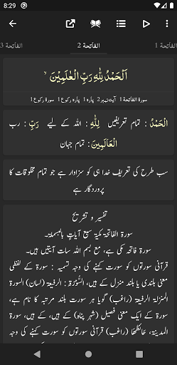- Ability to show/hide Word by Word, Quran Translation (Tarjuma) and Tafseer