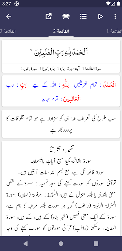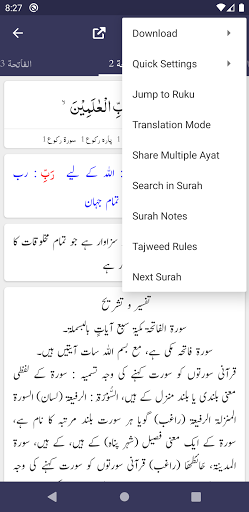 - Mushaf Mode: Recite Quran with Translation (Tarjuma) or Tafseer