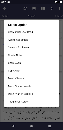 - Share Ayah with or without Quran Translation (Tarjuma) and Tafseer