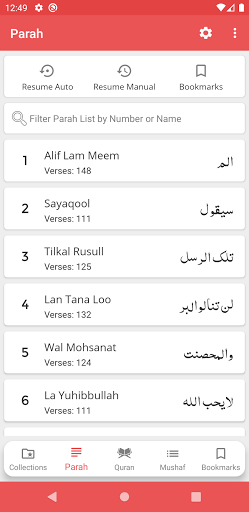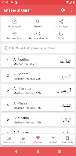 - Mushaf Mode: Recite Quran with Translation (Tarjuma) or Tafseer