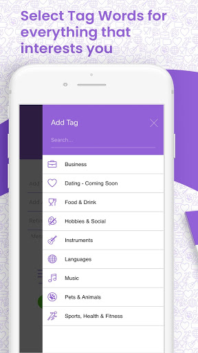 1. Select 'Tagwords’ of all your interests - from your favourite types of music, to new hobbies you’re looking to learn.