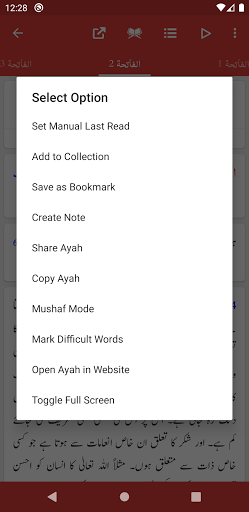 - Share Ayah with or without Quran Translation (Tarjuma) and Tafseer