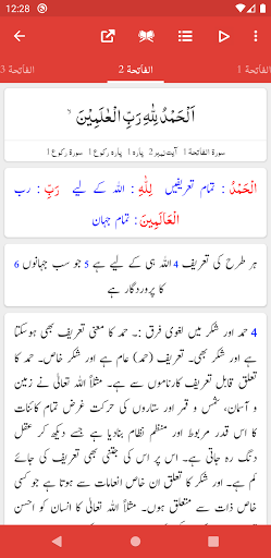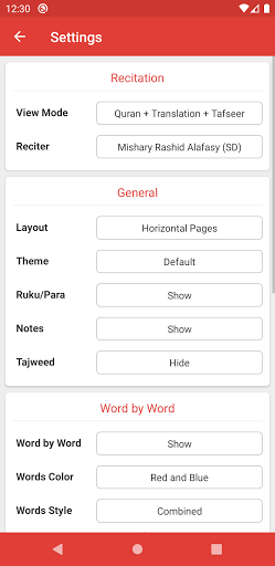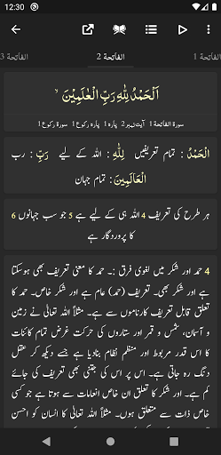 - Ability to show/hide Word by Word, Quran Translation (Tarjuma) and Tafseer