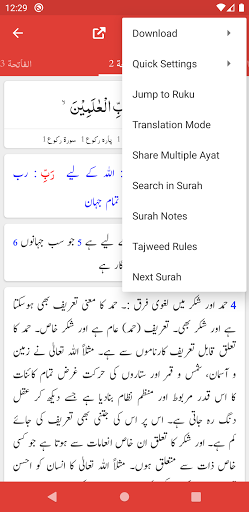 - Mushaf Mode: Recite Quran with Translation (Tarjuma) or Tafseer