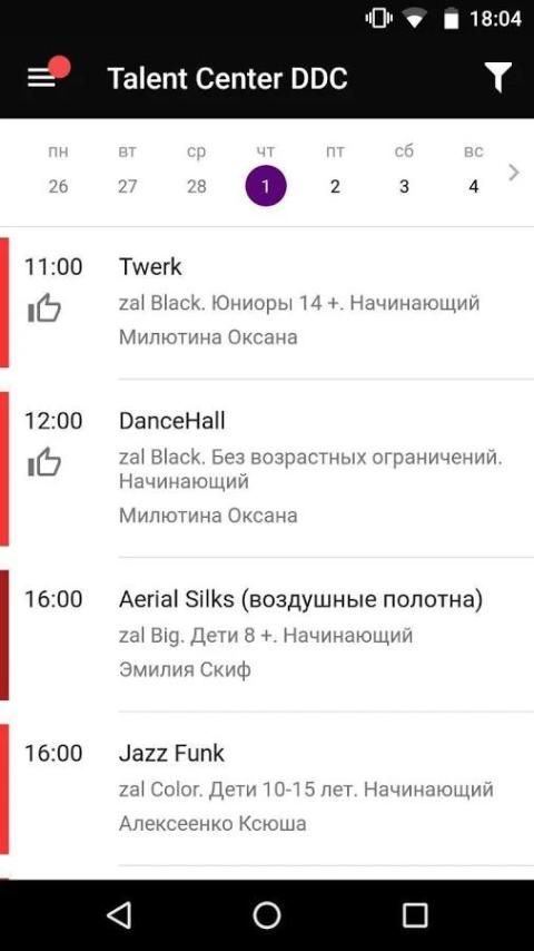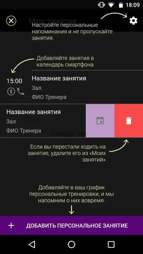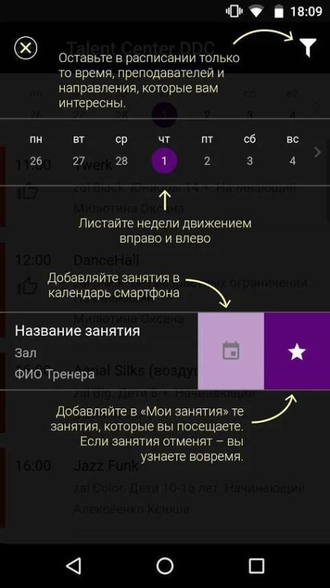 With the app you can follow the news, schedule of clubs, to receive information about changes in the schedule and special offers.