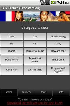 Save time and money by focusing on intelligently preselected phrases. Most Apps or classes try to teach you 1000s of words you will never need. This App shows & plays just phrases that you will very likely need! Tap a phrase and it will be spoken for YOU in French! The best way to learn the French language.