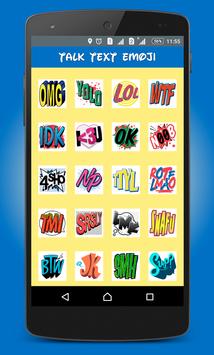 Save time using talk text emoji app. It is contains short words like OMG, LOL, BTW, THX, RAD, Sorry, Nope, SMH, YOLO, WTF, ROLF etc.