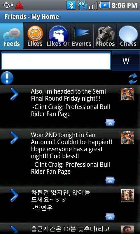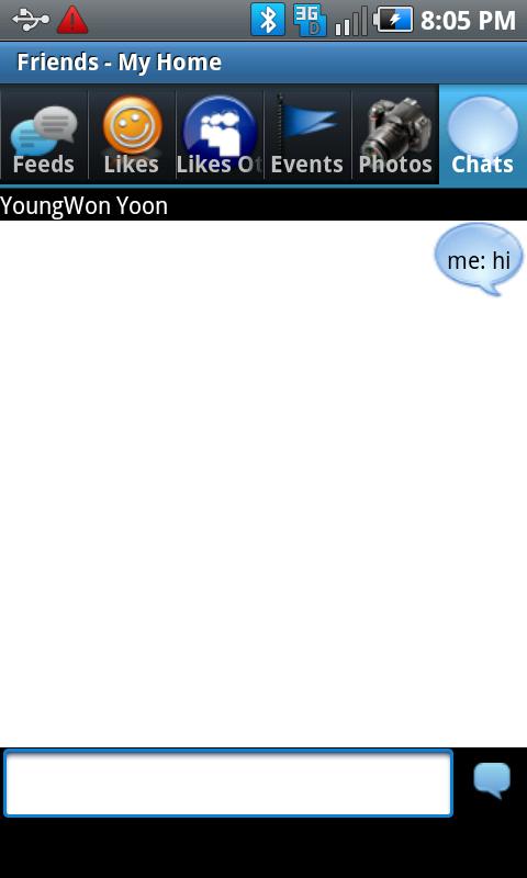 [This is a free version with an advertisement from* Airpush: Ads in notification (Once or twice a day)This doesn't have any in-app banner ads.There's an ads free paid version available in the market.]This app is not developed by Facebook.Feeds Tab: - Show updated feeds- Write status update- Post a comment to friends postLike Tab:- See what friends likeEvents Tab: - See the list of events for each friend - sync to phone calendar - Sync birthday to phone calendarPhotos Tab: - Explore friends photos with gallery - upload single/multiple photos to Facebook chat Tab: - Live chat with online friends via Facebook.Home screen Widget: You can register to home screen. - Go to Menu -> Settings -> Widgets -> Advanced TalkBox - Press Back Key to register to home (instead of home key)Recent changes:Removed greystripe full screen ads permanently.content rating: Everyone