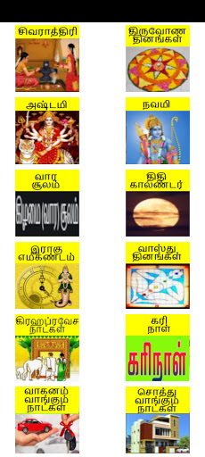4.Displays the auspicious days, Rahu Kaalam, Yamagandam.
