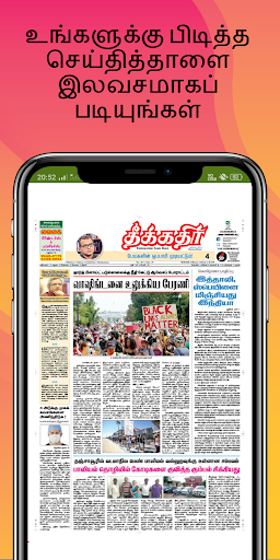 Read All Daily Tamil Newspapers of India in this app. Read News from various parts of the world from top Tamil Newspapers in one place. This app loads newspapers in a fast manner and provides newspapers with Tamil Faster than any other app in just 5 Mb size and saves mobile data of users who are using this app.