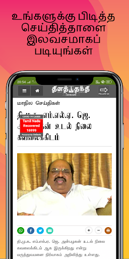 With a single tap, you can load your favorite Tamil newspapers from all Tamil newspaper apps and share with your friends and family or you can even share this app with your Facebook friends.