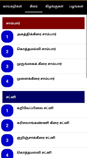 The various categories are as listed in Tamil Paarambariya Samayal App