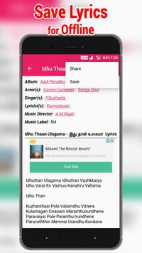 Now you don't have to waste your time to search the lyrics of your favourite or new tamil songs, just download our app, all tamil songs lyrics at your fingertips.