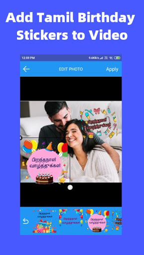 = Easy to create birthday video from photo Tamil, so you can create a beautiful Tamil birthday video with photo and song even you can write Tamil birthday message on the photo , with amazing Tamil birthday wish stickers and birthday image in Tamil.