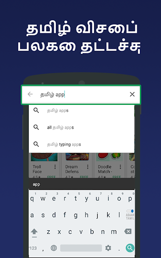 Typing Tamil language is a simply keyboard that have a variation of English letter keyboard layout with different keyboard themes and size user can change the keyboard layout and keyboard themes according to his choice. Tamil keyboard for android have a input board for typing Tamil language which shows the Tamil alphabets on screen from which user would type from English to Tamil or type Tamil in English.
