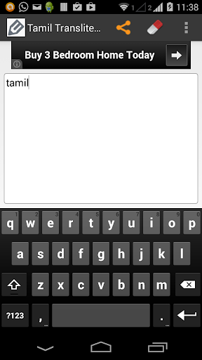 The English (Tanglish) words are translate to Tamil after hitting space.