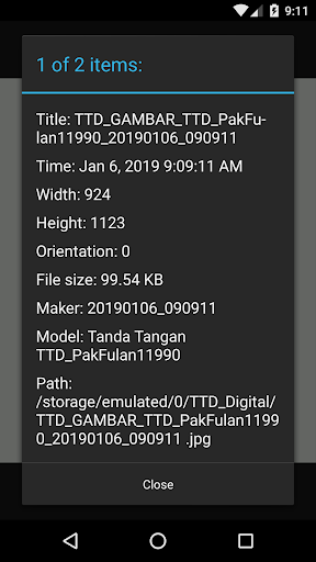 - Gambar tanda tangan disimpan dalam format JPEG atau PNG, dan dapat dilihat langsung melalui aplikasi Galeri Gambar atau file manager bawaan perangkat.