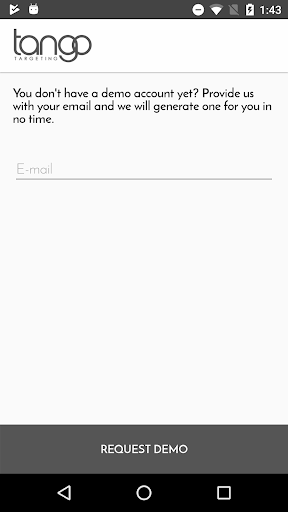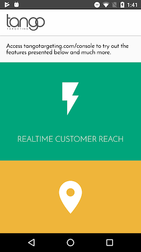 This is a demo application integrating the Tango Targeting SDK. It allows the user to test the functionalities supported by Tango Targeting. Once installed and registered, the app can