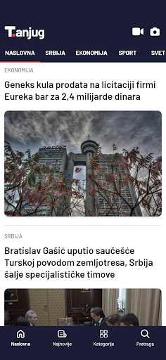 Tanjug membawa berita terpantas dan paling tepat dari Serbia, rantau ini dan dunia!Acara yang disertakan, Tanjug memancarkan kira -kira 400 maklumat, fotografi, ekonomi, perniagaan, masyarakat, kronik, budaya, sukan, dan lain -lain. Pemilihan gambar dan video