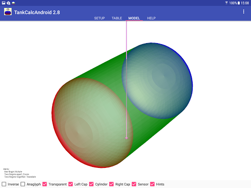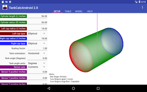 TankCalcAndroid is an Android-based version of my well-known storage tank analysis program TankCalc. I created it on hearing from a number of tank farm managers who wanted a more convenient way to analyze storage tanks in the field. This version includes most of the features of the desktop version — the table generator, the 3D viewer, even the anaglyphic true-3D viewing mode. It also has the ability to email its results to a user-provided address.