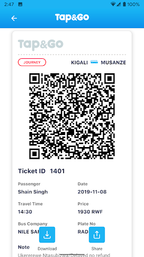 Tap&Go App is a transport payment by AC Group used by commuters in Rwanda traveling within and outside Kigali.