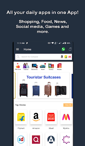 Tapzing Shopping lite application Contains some of the major online shopping sites Amazon, Flipkart snapdeal , Moglix, Shopclues , Myntra , paytmmall, jabong , abof , Ajio and more.