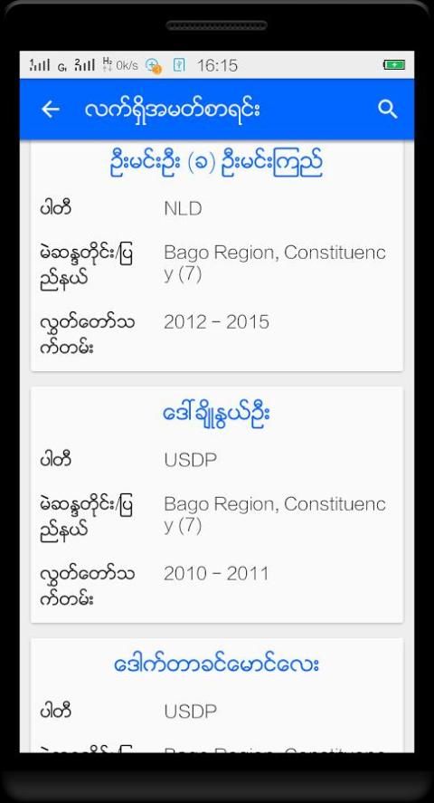 ပါတီႏွင့္လႊတ္ေတာ္ကိုယ္စားလွယ္ေလာင္းမ်ားစာရင္း၊ လက္ရွိလႊတ္ေတာ္ကိုယ္စားလွယ္မ်ား၏အခ်က္အလက္တို႕ကို သိရွိႏိုင္သည္။