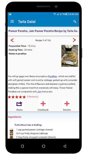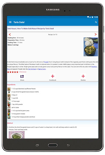 An Indian Recipe app with recipes from all cuisines and courses by Tarla Dalal.