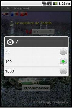 you can set the app for 33, 100 or 1000 and choose the preferd language : English, Frensh or arabic and when you reach the limit as you set, a small viberation and a bib occurs and the number will be zero to start again.