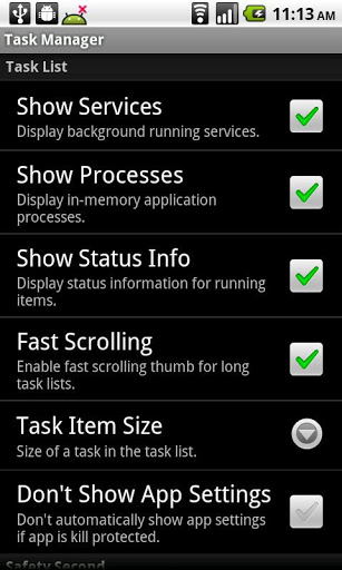 Task Manager Task Managers are no longer necessary for Android http:geekfor.mefaqyoushouldntbeusingataskkillerwithandroid This app is no longer supported. It will be taken off the market in a few months. Thank you for your support.