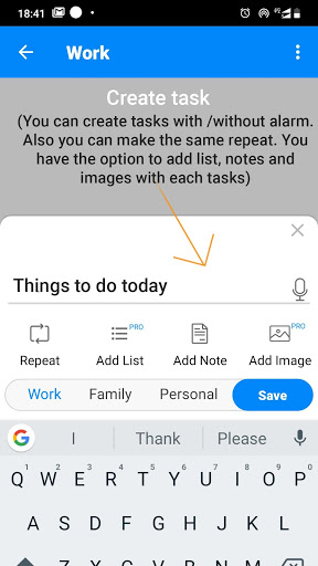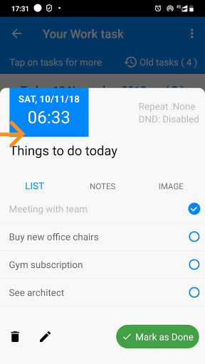 Task Reminder is simple and user friendly reminder app to manage your day to day tasks, reminders, to-do list and notes. Whether to remind you to call someone or go to gym or take the dog for a walk or sending reports to your boss, you have the right app to help you manage every day. The list feature helps you to create your grocery list or any list. You will also get add notes feature with every tasks. Here are the key features of Task Reminder