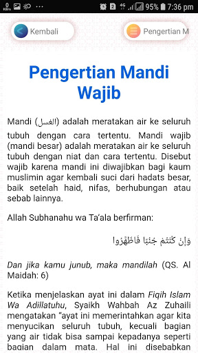 Sejatinya, cara mandi wajib haid sama dengan mandi disebabkan oleh junub atau nifas, mungkin yang membedakan hanya niatnya saja, jika Anda melafadzkan niat secara lisan saat bersuci. Poin-poin di atas merupakan isi dari aplikasi ini yang dapat Anda jadikan sebagai panduan untuk bersuci, baik disebabkan oleh haid, nifas, berhubungan, mimpi, atau hal lainnya. Semoga bermanfaat dan silahkan beri kami rate dan juga comment agar kami dapat melakukan perbaikan untuk aplikasi ini. Terima kasih