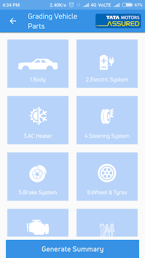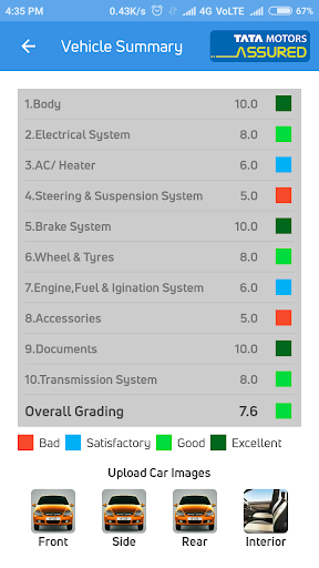 The app is for Engineer at Dealership to certify Used Cars for Tata Motors Assured. Post certification the app will generate PDF document that can be showcased to the customer and will send approval request to the Territory Sales Manager.