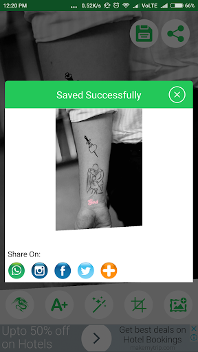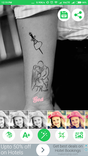 This is much helpful for those men and girls who don’t want to draw permanent tattoos on body but liking showoff tattoos and stickers in social media. Using tattoo my photo app, you can write your lovers name, your pet-name with love tattoo, heart shape tattoo, friendship tattoo, stylist tattoo, couple tattoo, scorpion tattoos, tattoo for girl, tattoo for men and lot’s off others. You can use this app as reference before draw permanent tattoo on your body. You can select one of the best tattoo from our superb tattoo collection and try it in your photo before make it permanent. So just use this app and be in trendy tattoo world.
