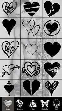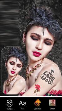 Easily apply tattoo on your Photo, resize, rotate, save or share using social media!