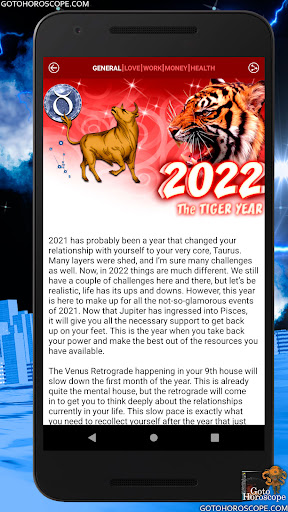 Taurus Horoscope is an easy & cozy horoscope for everyday use. Astrological forecasts and horoscopes for Taurus on Android apps free, developed with love for the Zodiac Sign Taurus by the GotoHoroscope.com