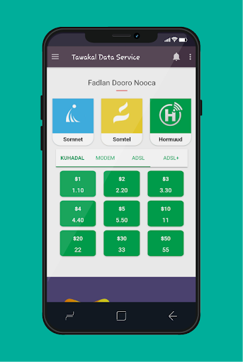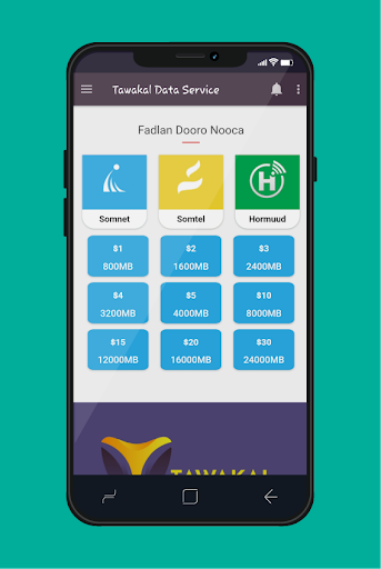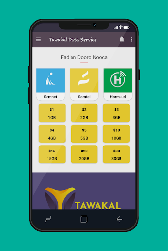 Somnet ama Hormuud hadii aad isticmaashaan Tawakal Data . Sidoo kale ka waxaad ka heli doontaa Adeegyada EVC Plus, ANFAC iyo Artimet